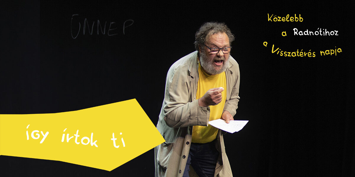 Szeptember 24-én, szombaton Közelebb a Radnótihoz – a Visszatérés napja címmel nyílt napot tartunk. Azon nézőink, akik korábban már ellátogattak hozzánk a Színházak Éjszakáján, tudhatják, hogy az egyik legizgalmasabb és legkedveltebb programunk az Így írtok ti. Schneider Zoltán – aki ismét vállalta a játékmester szerepét – színészkollégáival együtt arra kéri most a közönséget, hogy hozzanak létre közösen egy új darabot – amelyet egyetlen alkalommal, csak ezen az estén láthat a publikum.