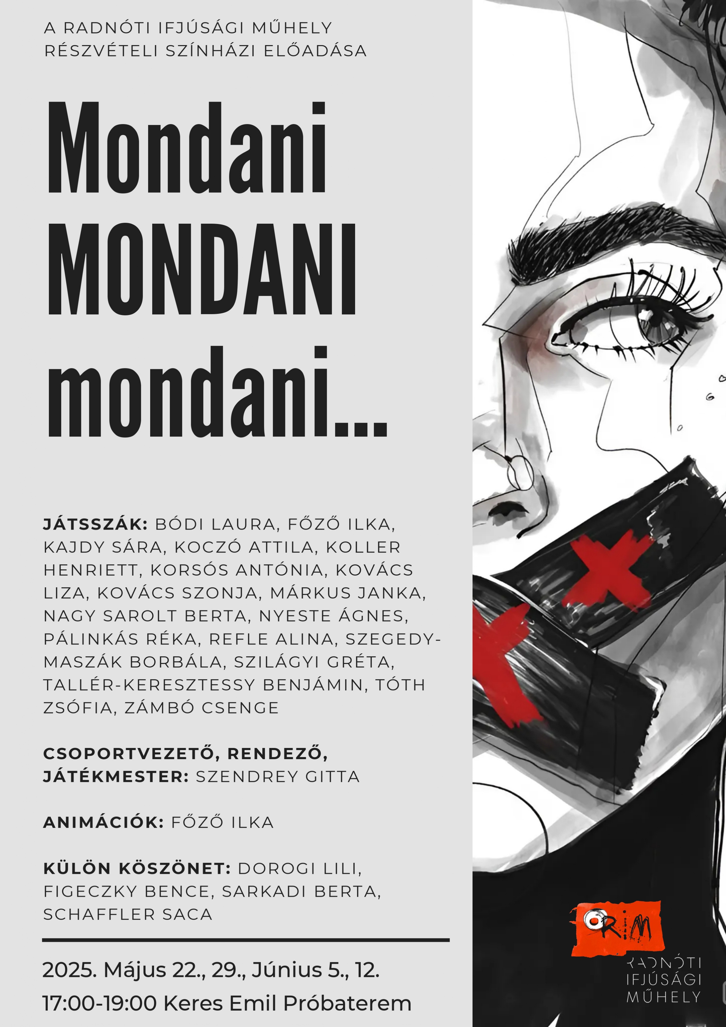 Május 22-én látható először a Keres Emil Próbateremben a RIM részvételi színházi előadása, a Mondani, MONDANI, mondani.