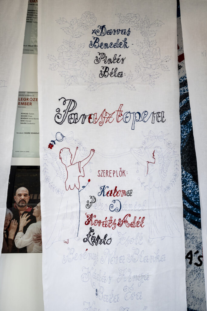 A próba után 11:15 és 14:15 között hímző workshopot tartunk a Keres Emil Próbateremben (Andrássy út 31.) Pittmann Zsófia vezetésével, ahol közösen folytatjuk lapos-, szár-, pelenka- , hurok- és láncöltésekkel a Parasztopera házi áldásos falvédőjét. Csatlakozz hozzánk, ragadj hímzőfonalat a kezedbe akár csak egy fél órára is!